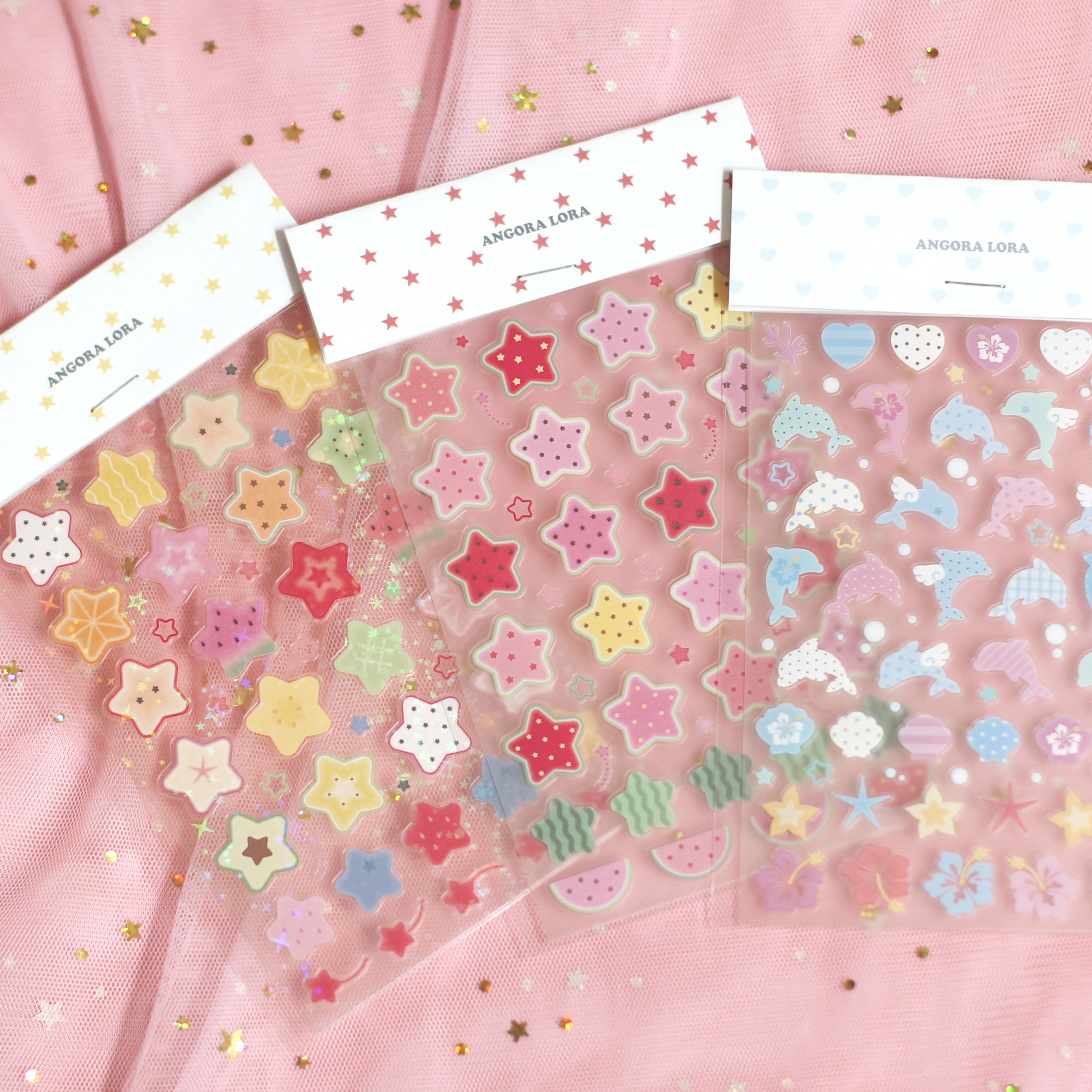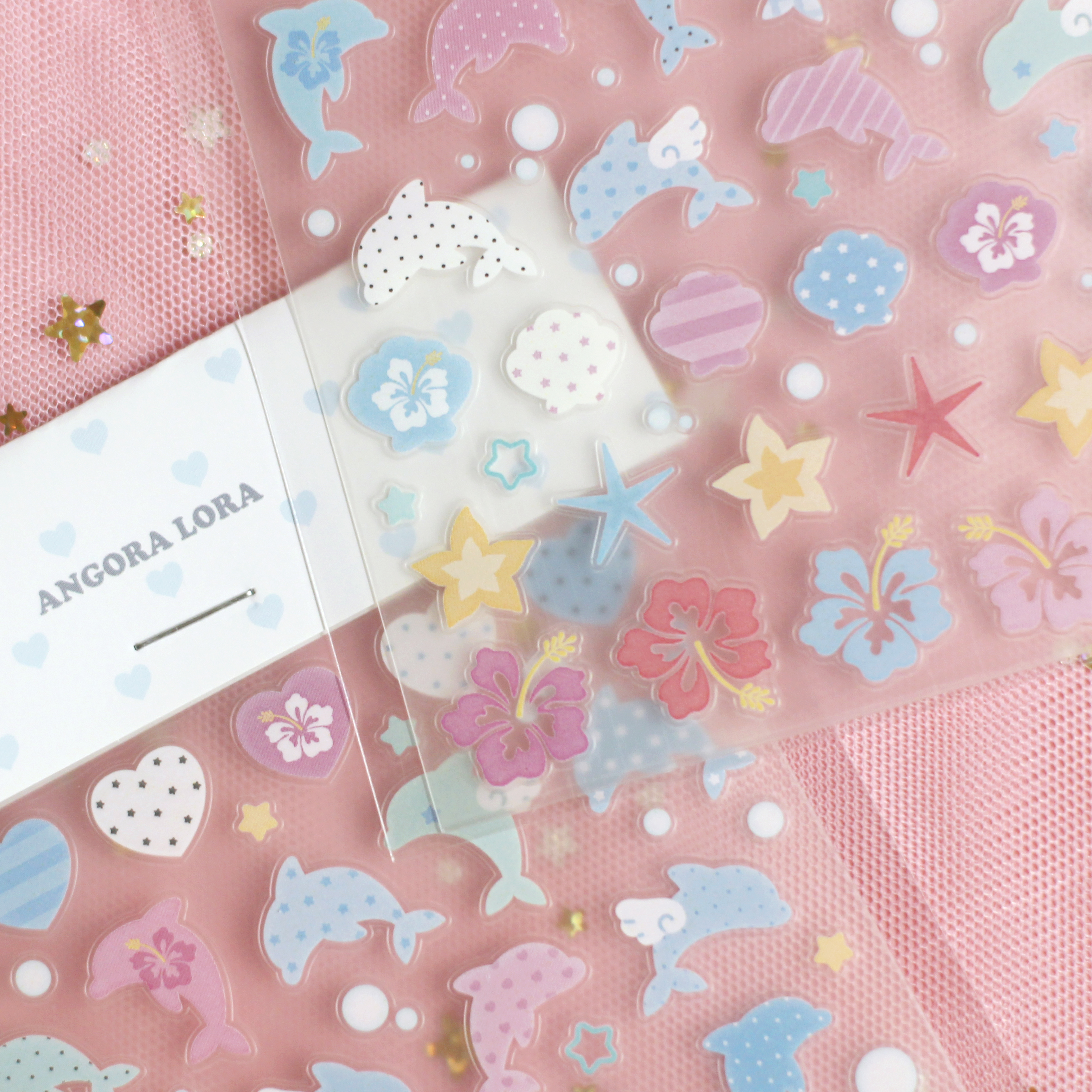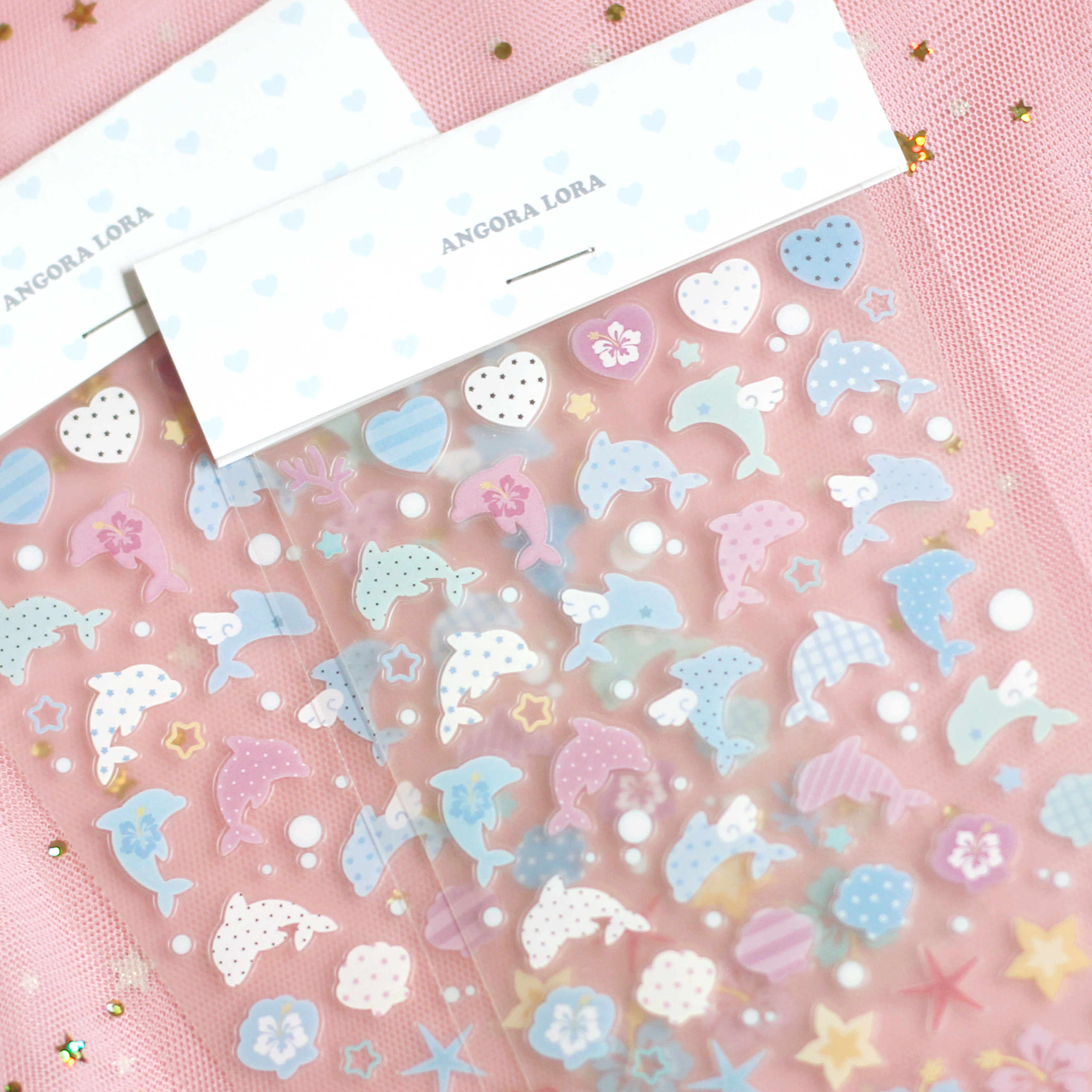 Angora Lora | Transparent fruit star&dolphin sticker (3 types)
