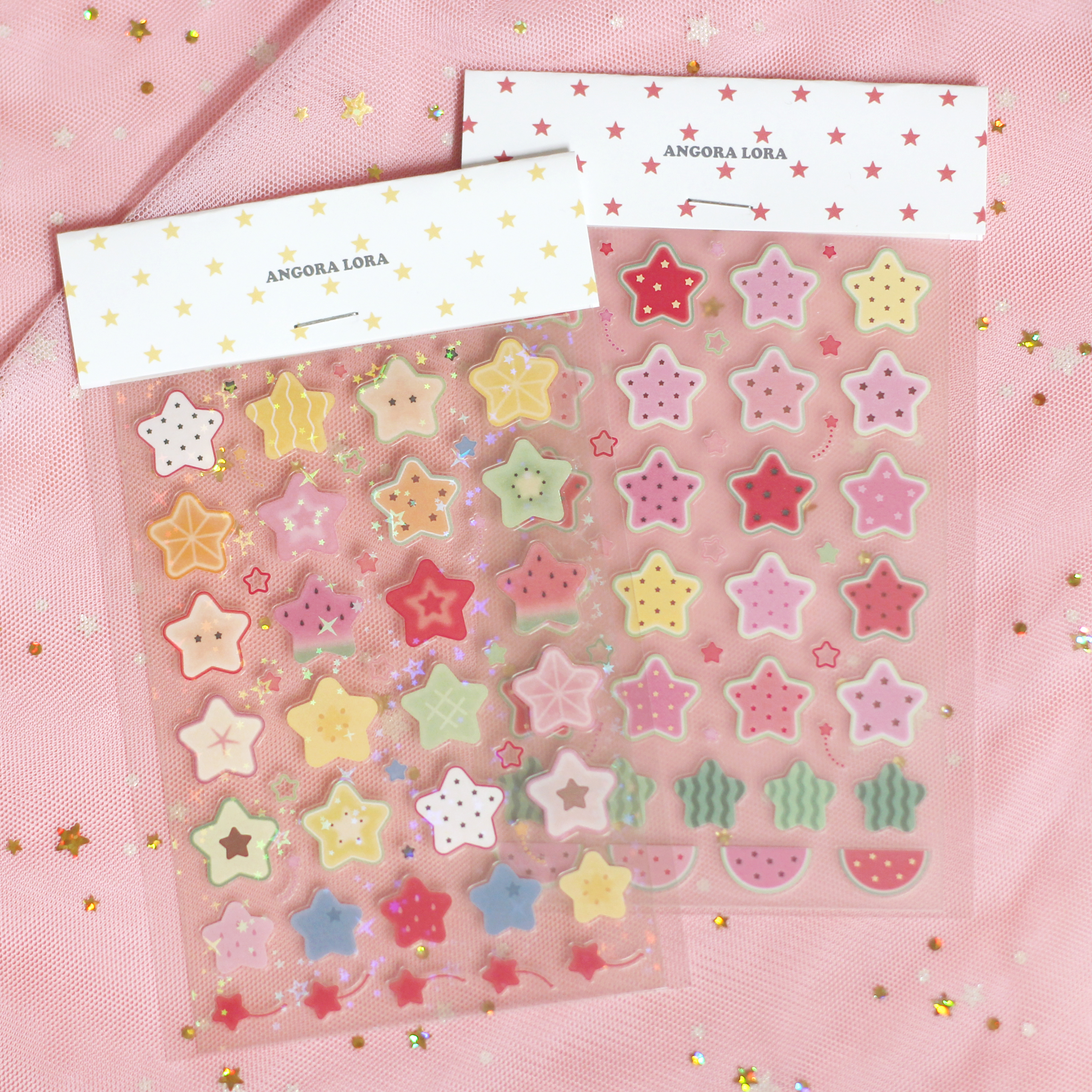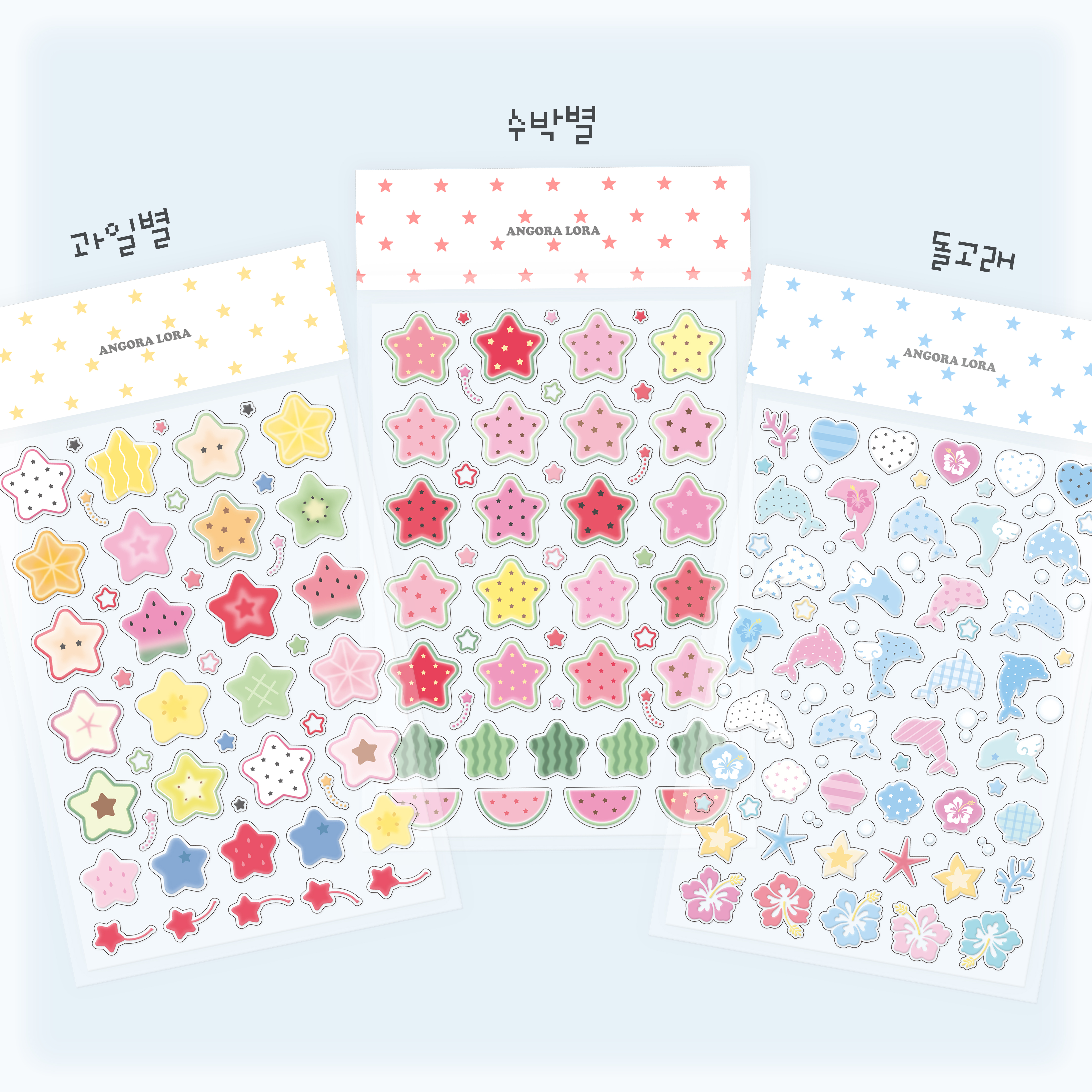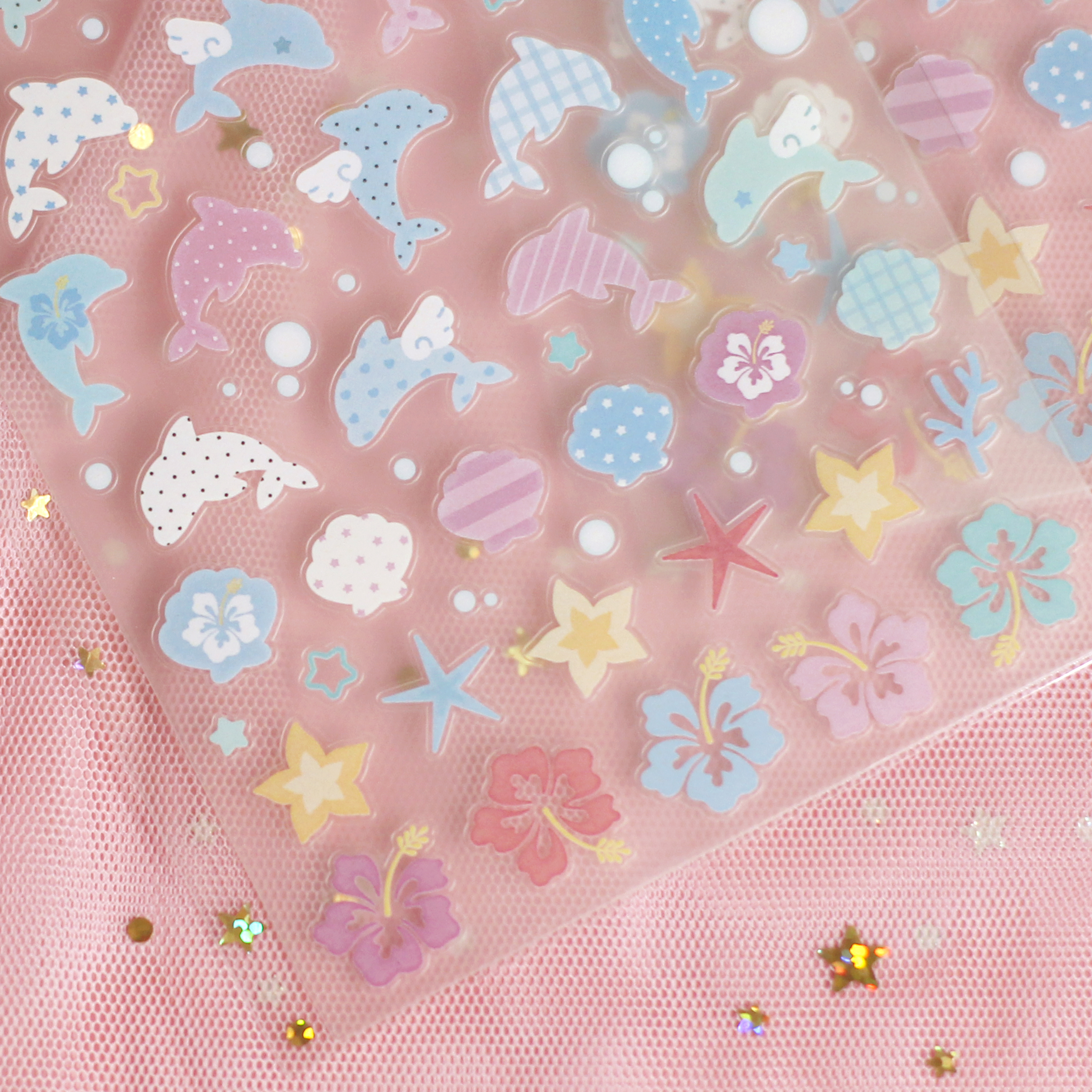 Angora Lora | Transparent fruit star&dolphin sticker (3 types)